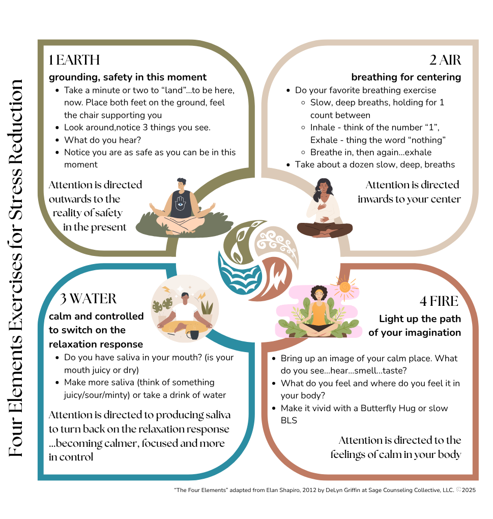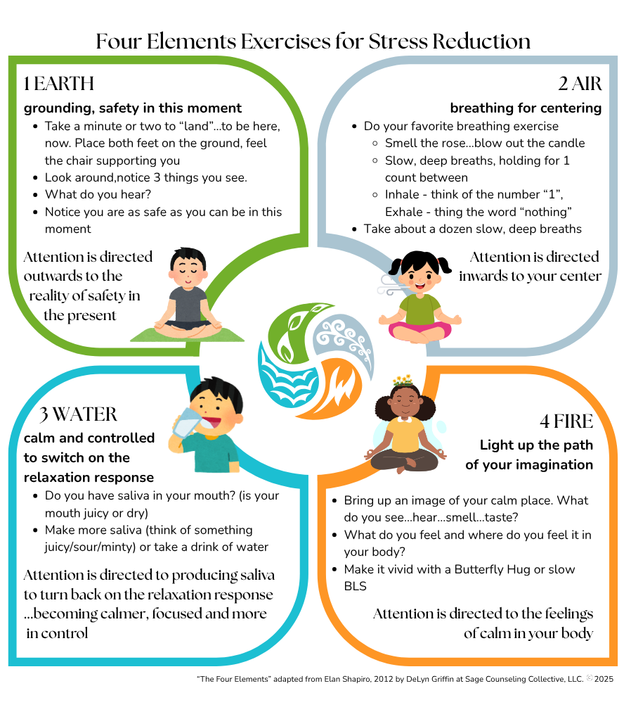 4 Elements Exercise for Stress Reduction card to give parents for use between sessions